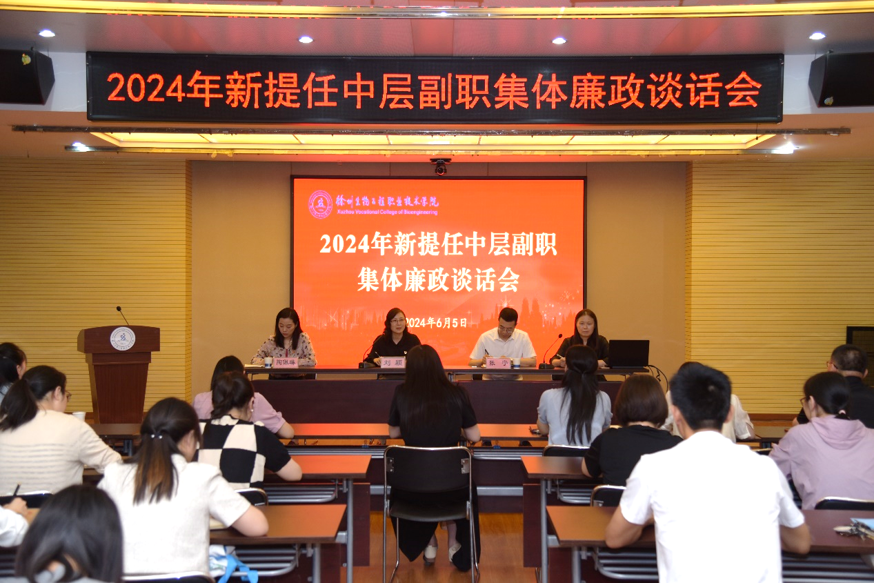 6月5日下午,校纪委在图书馆副楼一楼视频会议室组织召开2024年新提任中层副职干部集体廉政谈话会。纪委委员,新提任干部参加会议。校党委委员、纪委书记刘颖出席会议并讲话。