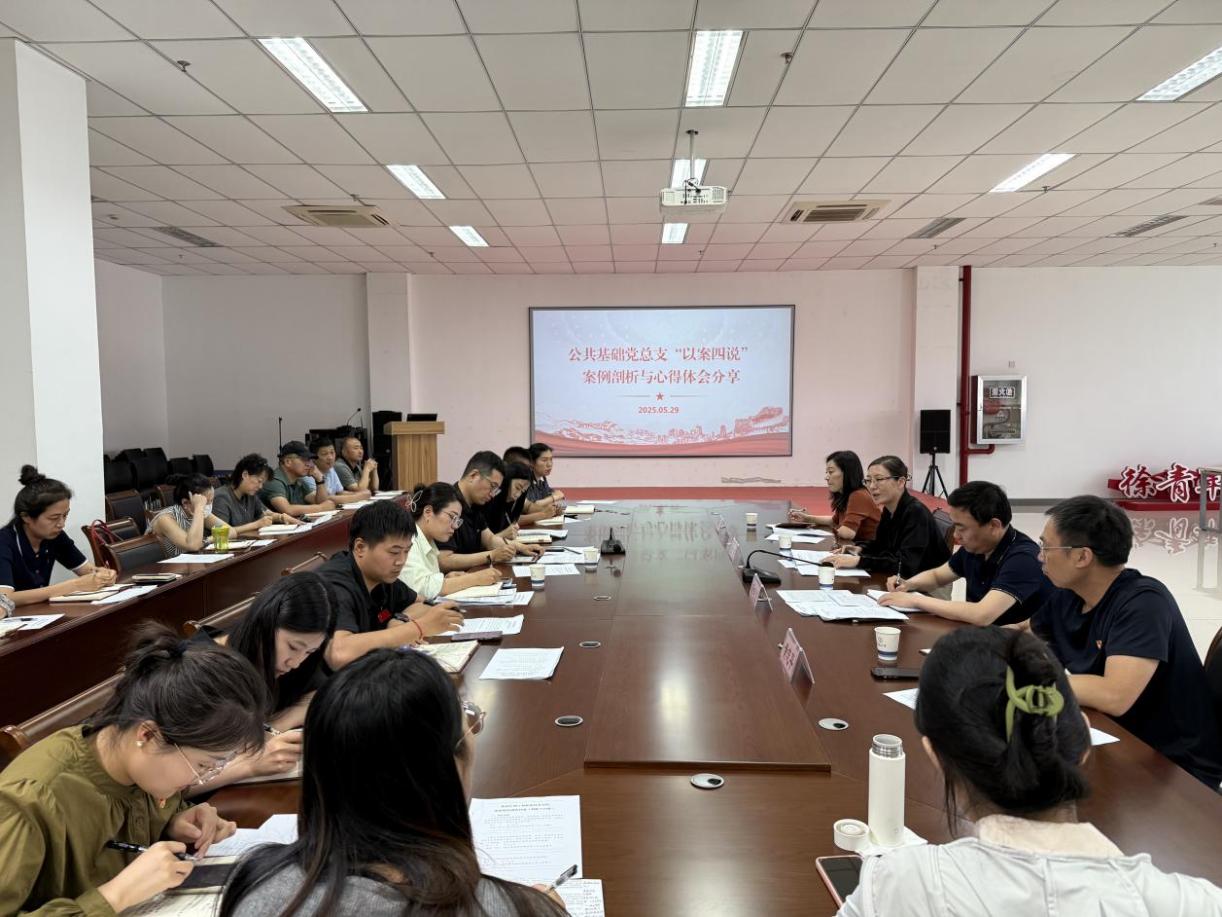 公共基础党总支开展 “以案四说” 警示教育,从纪法德责剖析,结合课程融入思政元素,如大学语文强化家国情怀,英语增加中国故事素材,建立课程思政预警清单,设师德先锋岗,构建“党建+育人”体系。